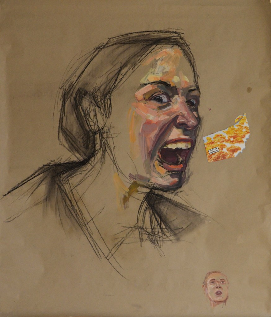 In these works I am the child and the man at once. I am annoying and annoyed by myself at the same time. Works made with acrylic on paper in 2016.